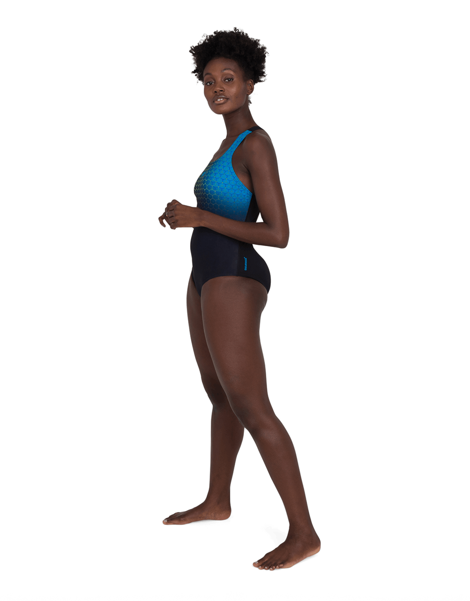 Traje de baño elegante que te dará el rendimiento que estas buscando. Disfruta del estilo atemporal con este clásico reinventado. Hemos tomado la icónica silueta de nuestro modelo Medalist y le hemos dado una actualización gráfica, con un elegante estampado en negro y azul y detalles en amarillo fluorescente. Nuestro popular traje Medalist, sigue siendo el mismo estilo querido que lo convierte en un esencial de tus entrenamientos, presenta un corte medio en el cuello, la espalda y la pierna para brindar cómodas sesiones de entrenamiento y una excelente libertad de movimiento. Súper duradero y construido para durar, está hecho de nuestro tejido exclusivo Endurance + para una resistencia al cloro del 100%.